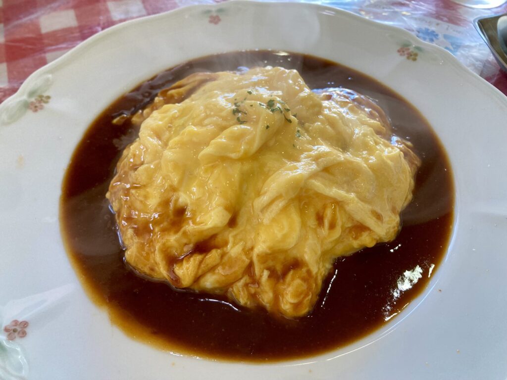 とろとろの卵、ケチャップライスとデミグラスソースが三位一体で、ひと口食べると、優しい卵の甘みとソースのコクが重なり合い、幸福感が口いっぱいに広がります。