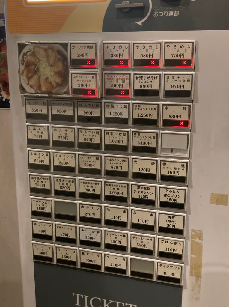 看板メニューの 牛ホルモンつけ麺 は根強い人気。