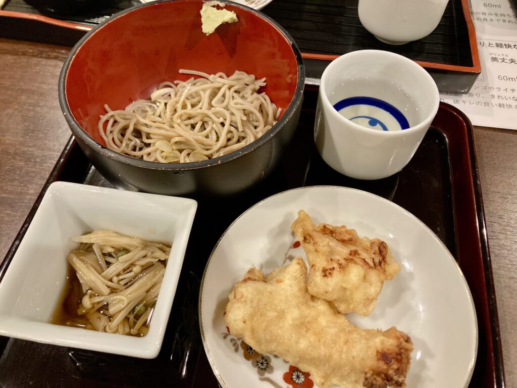 🧂 おつまみ:選べるトッピングのミニそば(¥600)+とり天