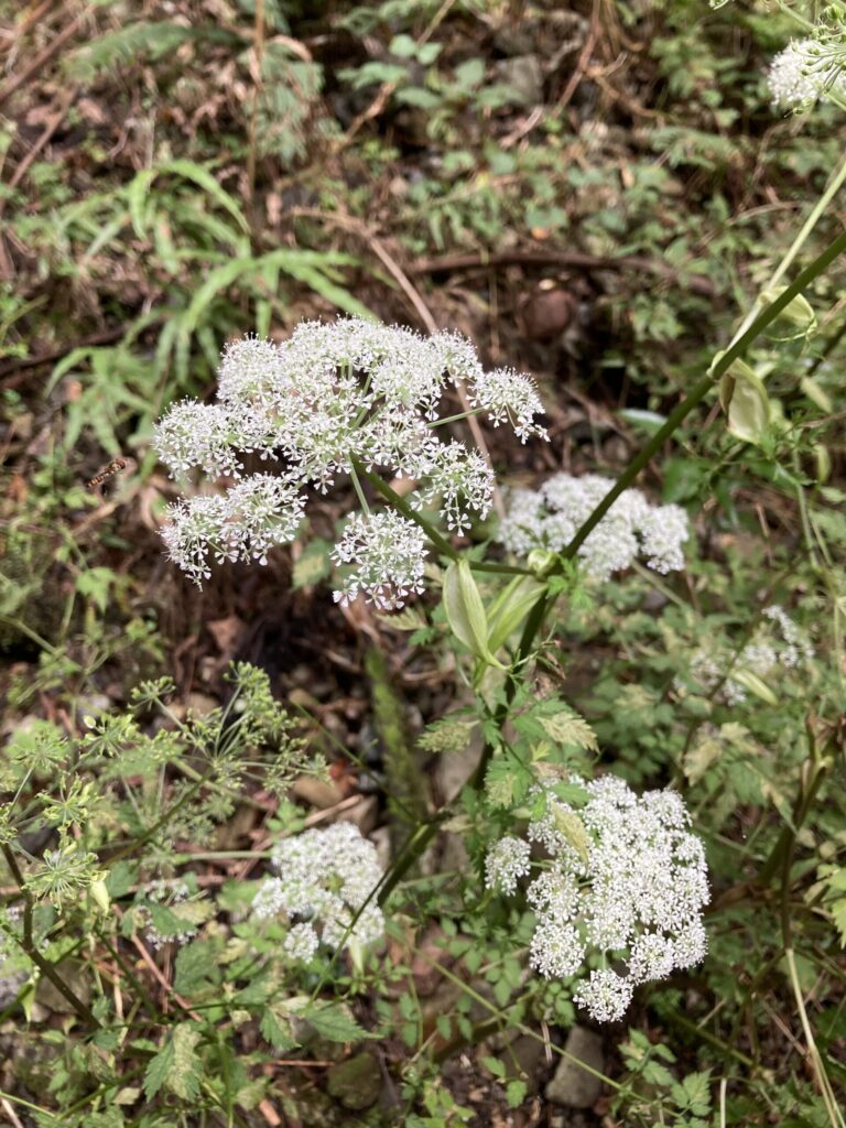 - 特徴: 白い小花を傘状に咲かせる多年草。茎は中空で直立し、高さは80〜150cmほど。葉は3〜4回羽状に分かれ、裏面が白っぽくなるのが特徴。山地の林縁や渓流沿いなど湿った場所に多く、秋にかけて開花。根は薬用としても利用されてきました。