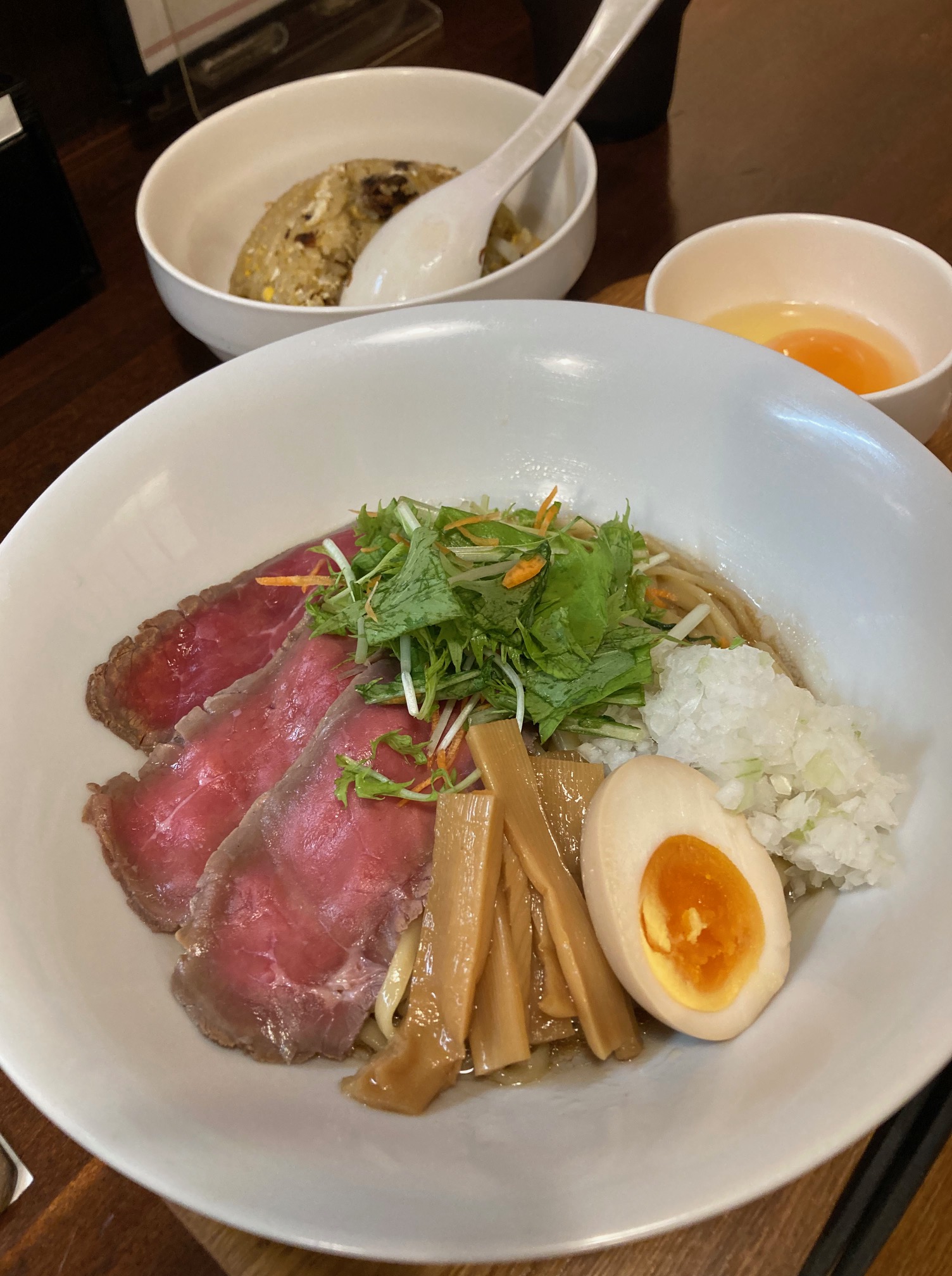 「麺処 和へる」は、レアチャーシューの旨みと、生卵トッピングの濃厚さがクセになる油そばの名店。
