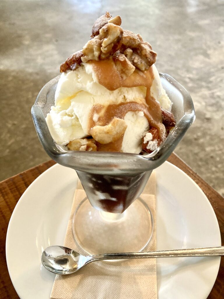 そしてサンデーパフェは、はちみつ漬けのザクザクナッツ、