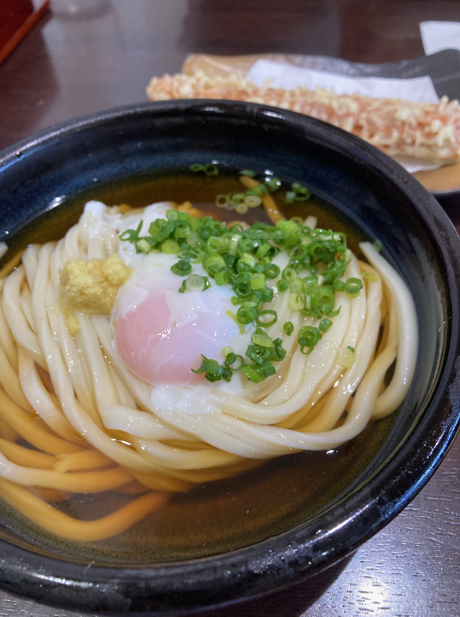 香川で一番好きなお店がこちら。今回は「温玉ぶっかけうどん(冷)」を注文。