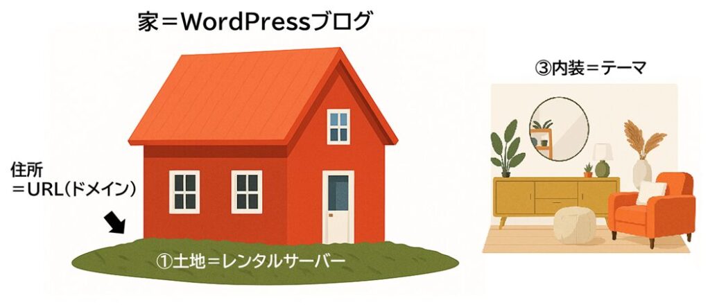 WordPressブログを家に例えると、